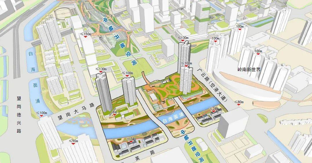 根据规划,嘉禾望岗地铁站周边地块将以“枢纽赋能、生态融城”为核心,采用“水岸共生”理念,以白海面涌为生态主轴,构建滨水慢行廊道。这条廊道将串联起沿线的公园、绿地、商业和住宅,形成一条连续的生态景观带。