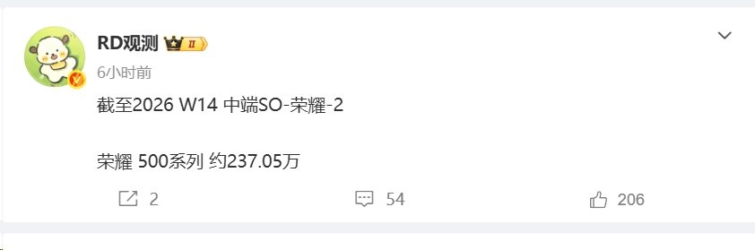 2026-04-19百家乐,百家乐官方网站,百家乐APP下载,百家乐游戏平台,百家乐网址,百家乐试玩,百家乐的玩法,百家乐技巧,百家乐公式,百家乐打法,百家乐电子,21点,德州扑克,快三,pk10,时时彩,北京赛车说实话,最近手机圈最有意思的一件事,不是某款新机又堆了多猛的参数,而是像荣耀500系列这种“看起来不算特别炸裂,实际却越卖越猛”的产品,越来越能打了。最新数据来看,截至2026年第14周,荣耀500系列销量已经来到约237.05万台,这个成绩放在当下竞争极其激烈的中端市场,已经不是“卖得还行”这么简单了,而是真正进入了热销机型行列。很多人总觉得,一款手机要想卖爆,必须性能顶尖、影像封神、价格屠夫,事实上并不完全如此。真正能让消费者掏钱的,往往是那种没有明显短板、日常体验又特别顺手的产品,而荣耀500系列恰好就是这一类。